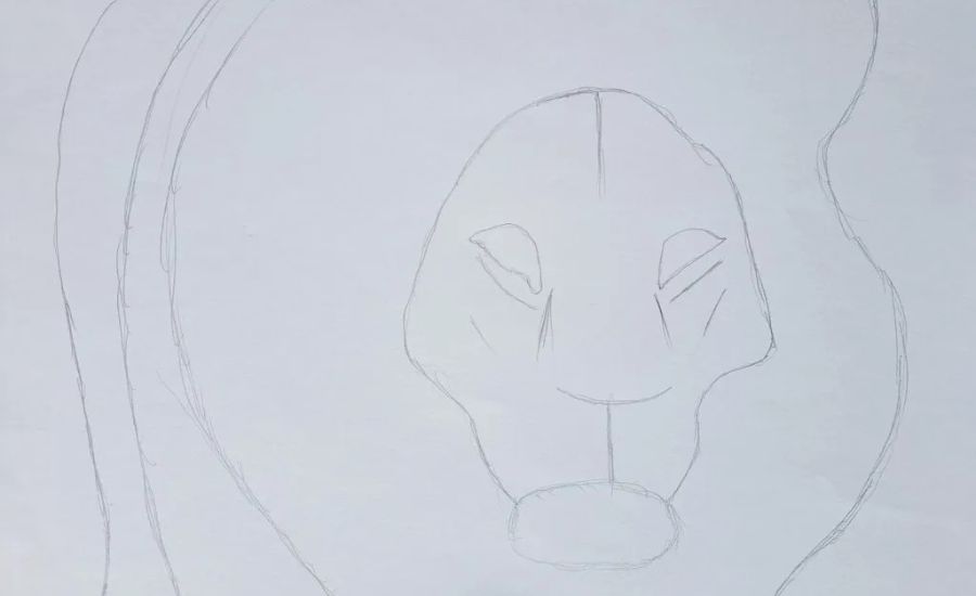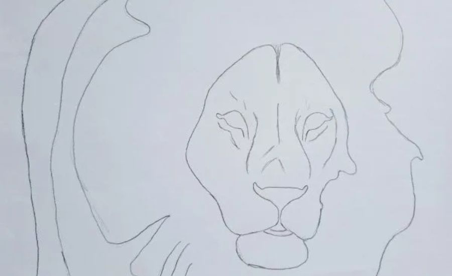 When sketching the lion’s details, it’s important to start with light lines that gently outline the boundaries of the face, mane, and features.